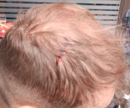 Mon ami et collègue a une grosse commotion cérébrale et un de mes collègues a pris des coups dans les jambes en m’aidant à me relever. J’ai de multiples hématomes, une légère commotion et peut-être un doigt cassé.